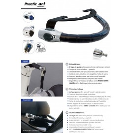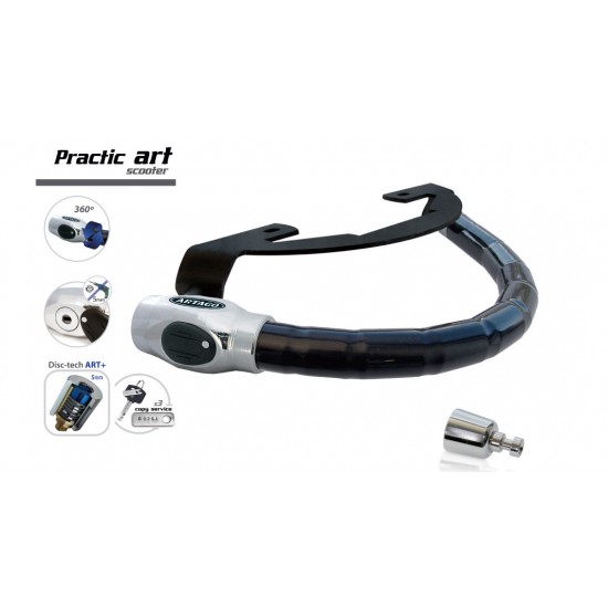 El Sistema antirrobo de alta gama para el manillar de tu scooter que te ofrece la posibilidad de dejar el casco integral de forma segura y rápida. ¡Es tan cómodo que siempre lo vas a poner. El Artago Practic ART es el antirrobo de manillar más seguro del mercado, con sistemas de anti-taladro y anti-ganzúa comprobados en los test y con los mejores resultados de homologación NF-FFMC. Como novedad incorpora los cierres blindados, casquillos de bolas y cable de acero.