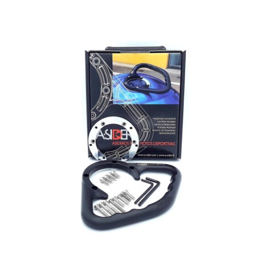 --Facilidad de montaje y desmontaje (en menos de 5 minutos al tapón de combustible:descuento) El asidero A-SIDER es un producto innovador (con patente mundial protegida) estudiado para resolver las necesidades que surgen para los usuarios de motos deportivas al transportar un segundo pasajero por la incomodidad que conlleva y la inseguridad que provoca.