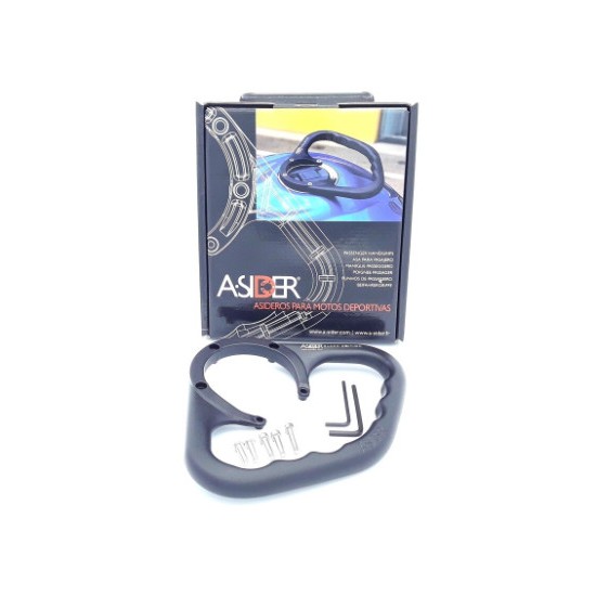 --Facilidad de montaje y desmontaje (en menos de 5 minutos al tapón de combustible:descuento) El asidero A-SIDER es un producto innovador (con patente mundial protegida) estudiado para resolver las necesidades que surgen para los usuarios de motos deportivas al transportar un segundo pasajero por la incomodidad que conlleva y la inseguridad que provoca.