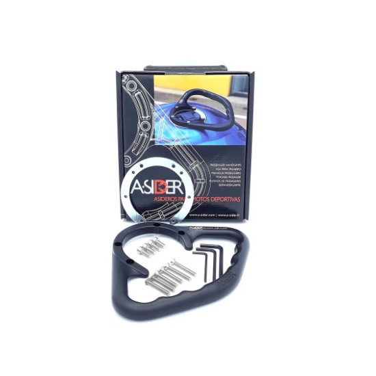 --Facilidad de montaje y desmontaje (en menos de 5 minutos al tapón de combustible:descuento) El asidero A-SIDER es un producto innovador (con patente mundial protegida) estudiado para resolver las necesidades que surgen para los usuarios de motos deportivas al transportar un segundo pasajero por la incomodidad que conlleva y la inseguridad que provoca.