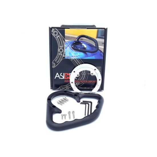 --El A-SIDER mejora notablemente la COMODIDAD y SEGURIDAD para el binomio piloto-pasajero. Ofrece al pasajero de una moto deportiva un punto de sujeción. Evita la presión del pasajero sobre el piloto en el momento de frenar y transmite seguridad al pasajero en el momento de la aceleración. Se fija en el tapón del depósito de combustible en menos de 5 minutos (se suministra el producto con un kit de montaje), lugar cercano donde el pasajero posiciona sus manos de forma habitual.