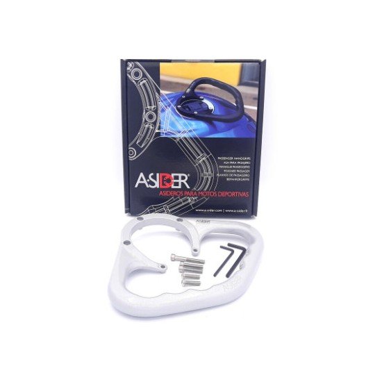 --Facilidad de montaje y desmontaje (en menos de 5 minutos al tapón de combustible:descuento) El asidero A-SIDER es un producto innovador (con patente mundial protegida) estudiado para resolver las necesidades que surgen para los usuarios de motos deportivas al transportar un segundo pasajero por la incomodidad que conlleva y la inseguridad que provoca.