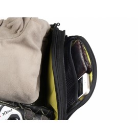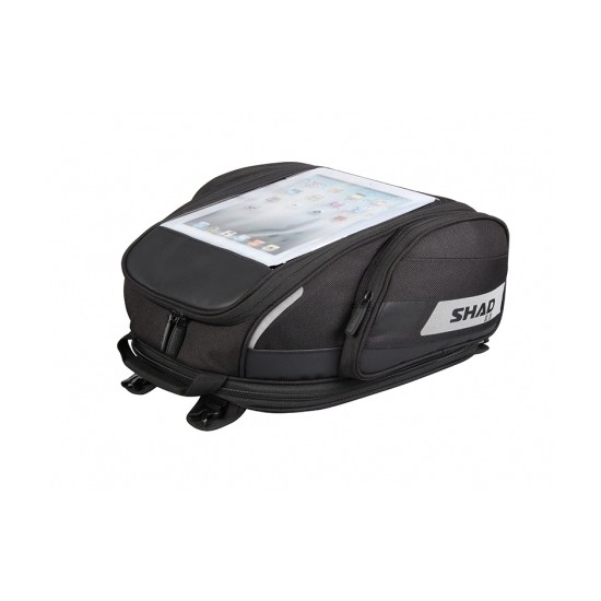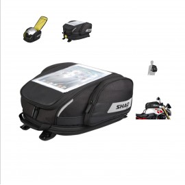 Bolsa de depósito extensible, con elementos reflectantes para mayor seguridad. Con compartimento superior para mapas, tablets, GPS, con pantalla táctil. Fijación a la moto por medio de correas que van a chasis o estriberas, y a manillar (incluidas).