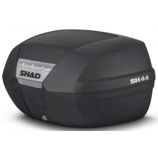 El SH44 muestra una cuidada estética inspirada en las maletas trail. Sus formas, su tapa "carbon look" y su embellecedor "alu style" son algunas de las señas de identidad de esta maleta.