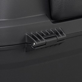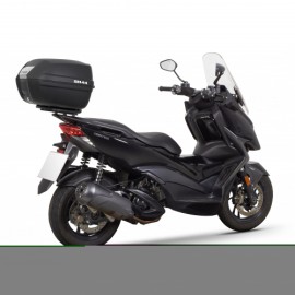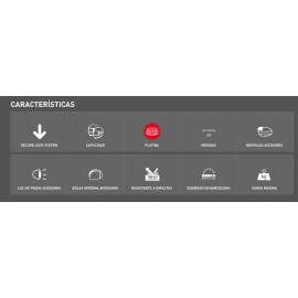Maleta con capacidad para capacidad casco integral y jet depende carcasas) perfecta para moto y scooter. Su "Double Locking System" proporciona seguridad gracias al doble cierre del mecanismo, que fija la maleta a la moto y bloquea el baúl. De estética cúbica se inspira en las maletas trail y permite transportar un gran volumen de carga en su interior. La maleta cuenta con un perfil de silicona que impide que entre agua o polvo en su interior y mejora el cierre de la tapa. Tiene disponibles accesorios como el respaldo para el confort del pasajero, la bolsa interna o la luz de freno.