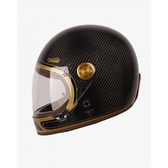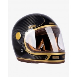– Casco integral fibra de carbono. – Carcasa calotta en 2 tamaños. – Relleno multi-densidad. – Visor inyectado. – Entradas de ventilación. – Cierre con doble hebilla. – Interior desmontable y lavable. – Sujección trasera para fijación de gafas. – Pantalla preparada para pantalla antivaho. – Lamina antivaho incluida. – Deflector. – Preparado para sistema Bluetooth. – Bolsa para transporte del casco. – Peso:1200±50gr. – Homologación ECE/UN R.22.06. – Tallas disponibles: XS – S – M – L – XL-XXL. – Colores disponibles: Full carbon / Golden blue carbon