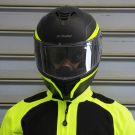 Casco integral con visor interior normatica 22.06 preparada para pinclok CGM 363X SHOT RUN negro amarillo mate mate con gafas Norm 22.06