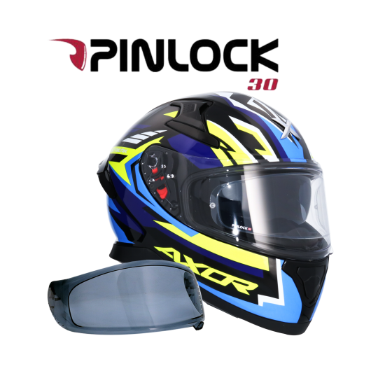 Casco de moto Integral Axor Apex Streak negro y azul con visor+pantalla negra y pinlock regalo