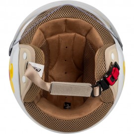 El NZI Pasarela es un casco jet con diseños exclusivos Agatha Ruiz de la Prada, una brillante muestra de su estilo inconfundible y colorido. Es un casco abierto ideal para desplazamientos urbanos en moto o scooter, y va equipado con pantalla transparente tipo aviador y cierre micrométrico.