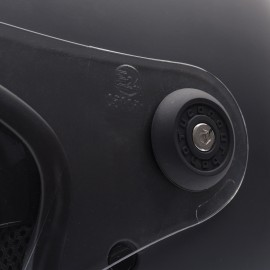 VISIBILIDAD – Pantalla transparente realizada en policarbonato, homologada en clase A, con tratamiento anti–arañazo – Cobertura de la visera de silicona antirayadura – Visera interna parasol escamoteable de policarbonato, homologada y con tratamiento anti–rayaduras – Transmisión a aproximadamente el 80% – Accionable manualmente – Amovible con desenganche rápido
