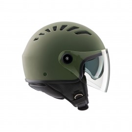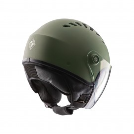 Casco Jet Tucano El TOP verde con gafas y con tapas superiore extriables