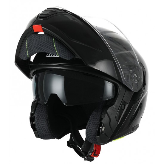 -Fabricado en compuesto policarbonato. -Visor solar interior fácilmente reemplazable y -Dispone de pantalla (única en el mercado con antivaho incorporado en pantalla.Crea una presión de aire permanente e impide así que se forme condensación, incluso cuando la diferencia de temperatura entre el exterior y el interior del casco aumenta. no necesita recambo de pinlock para substitución.