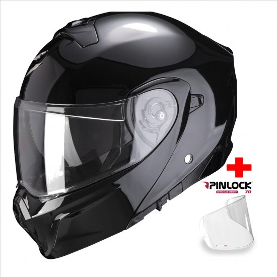 Casco Scorpion Exo-930 Negro con homologación PJ y pinclok incluido. --Fabricado en policarbonato, ideal tanto para un uso touring como urbano. Sucesor del exitoso Exo-920, dispone de un práctico visor solar, mecanismo de pantalla Ellip-Tec®, acolchado interior Kwikwick2® y un eficaz sistema de ventilación. --El casco dispone de homologación P/J para circular con total seguridad tanto con el casco cerrado en modo integral como con el casco abierto en modo jet. Destaca también la predisposición para instalar el sistema de comunicación Exo-Com.