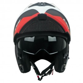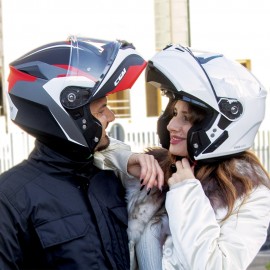 Una nueva actualización para un casco que, como su predecesor el 508 BERLINO, es el compañero ideal para cualquier viaje. El 568 BER es un casco modular con una carcasa HPT (terpolímero de alto rendimiento) disponible en dos tamaños externos. El sistema de ventilación que canaliza los flujos de aire dentro de la carcasa garantiza el mantenimiento de una temperatura óptima incluso en los meses más calurosos, mientras que el complejo de deflector de nariz, deflector de cubierta y deflector de cuello transporta el aire para mantener el casco estable y silencioso. casco incluso a altas velocidades. La visera basculante externa, con liberación rápida y bloqueo en la posición cerrada, está preparada para Pinlock 70, mientras que la visera solar retráctil interna ayuda al conductor a adaptarse a diferentes condiciones de luz. El conjunto de interiores termoformados hexagonales está fabricado con tejido extracool e incluye una carcasa especial para las patillas de las gafas. La preparación del intercomunicador de este modelo se caracteriza por una carcasa para el cuerpo del auricular y un soporte para el soporte del micrófono. La hebilla micrométrica y el soporte de correa elástica tricolor completan el equipamiento de alta gama del casco.