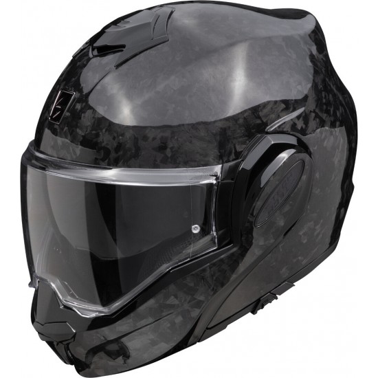 La obra maestra abatible de Scorpion ahora viene con una carcasa compuesta de carbono. EXO-TECH EVO Carbon es un casco abatible ligero con un manejo sencillo, características prácticas y un bloqueo de la sección de la barbilla para una seguridad óptima. Conserva el diseño de carcasa completa, pequeño, delgado y verdadero, pero con la elegancia de la superficie de fibra de carbono de alta calidad, proporciona un estilo excepcional. EXO-TECH EVO Carbon viene con una montura EXO-COM que combina perfectamente con el casco y los cascos de diseño EXO-COM.