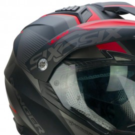 Casco OFFROAD para uso en carretera diseñado para que puedas cambiar fácilmente su configuración, Utilizando el kit de transformación integral no incluido en el paquete, pasando de la combinación de visera y pantalla para uso en todos los terrenos, al modo integral sin visera y con pantalla para correr sobra el asfalto.