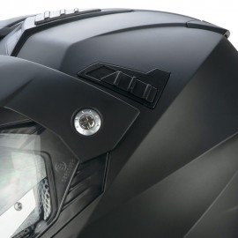 Equipado con una pantalla externa moldeada con perfil acanalado con predisposición Pinlock 70 no incluida, una pantalla parasol interna retráctil y una visera aerodinámica. Con ventilación Air Stream System de tres zonas y canalización interior. Interiores hexagonal termoformados desmontable para mayor comodidad en el ajuste, de tejido ExtraCool con malla blanca en contraste y con predisposición para intercomunicador. El equipo se completa con un deflector nasal, un deflector de barbilla y un tope de correa elástico.