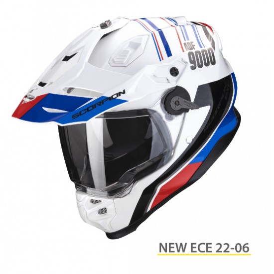 Casco Scorpion ADF-9000 Air tricomposite Desert blanco- azul homologación 06 y pinclock incluido