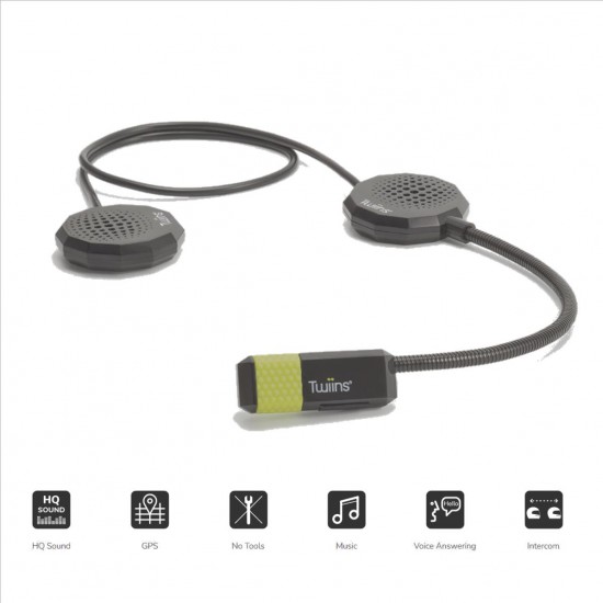El TWIIN SMART Pack DUO Twiins HF3 junto con su pareja Twiins HF1 es un intercomunicador de moto para piloto-pasajero con respuesta de voz. Escuche las indicaciones de su navegador. Sigue las instrucciones de tu GPS. Hable con su pasajero, conectándose con cualquier otro dispositivo compatible con Twiins solo un botón de control integrado en el micrófono