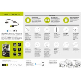 El Intercomunicador TWIIN HF3 INTERCOM con sonido estereo esta diseñado para quienes comparten el viaje,tanto en la ciudad como en la carretera .Puede hablar con el pasajero de forma clara y segura.las funciones de manos libres se mantienen sin cambios para su uso individual. Teléfono,música y navegador,mientras que la funcionalidad de INTERCOM te permite estar en contacto con el pasajero durante el viaje.Si llega alguna llamada,su modo INTERCOM se detendrá y le permitirá contestar.Una vez finalizada la llamada, su dispositivo volverá al modo INTERCOM. La función INTERCOM está lista para encenderse /apagarse con solo pulsar un botón. Y ahora trae todas las nueas mejoras de BLUETOOTH 5.0