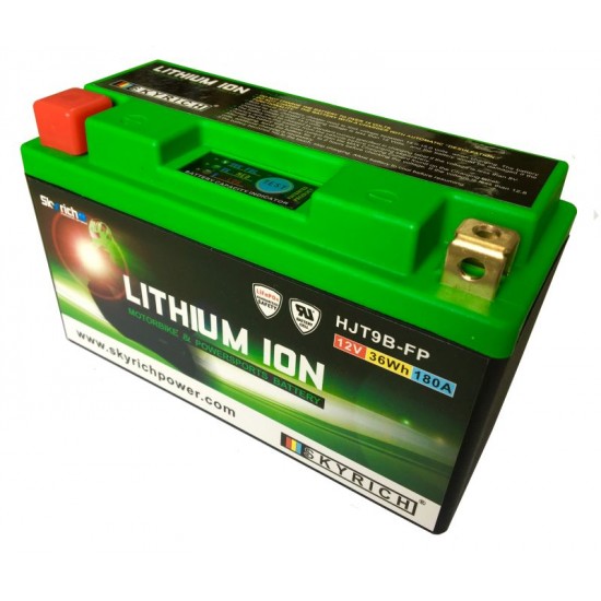 Sin contaminación, la batería de litio Skyrich está hecha de nuevos materiales (fosfato de hierro y litio de alta densidad - LiFePO4) y no contienen ni plomo, ni mercurio o cadmio, ni ácido sulfúrico y la densidad de energía es tres veces mayor que la batería de plomo-ácido normal. - No es necesario llenar de ácido, no necesita mantenimiento, no tiene problemas de fugas y es posible instalarla en cualquier dirección de forma segura y estable. - Son baterías muy seguras que no pueden entrar en combustión, ni tampoco estallar. Han pasado tanto la certificación de UL Lab como también las pruebas de seguridad de calidad CQC. - Potencia de arranque superior a las baterías normales. - Excelente ciclo de vida, más de 2000 ciclos (batería de plomo-ácido solo 300 ciclos) - Baja auto-descarga, mayor vida útil. El voltaje de descarga es estable, un 5% por mes como máximo, lo que permite que el rendimiento del motor también lo sea y que la motocicleta funcione más fácilmente. - Son baterías estancas y totalmente resistentes al agua debido a su impermeabilidad. - Su tiempo de carga es muy bajo, esa carga tan rápida permite que en tan solo 6 minutos tengamos la batería al 90%.