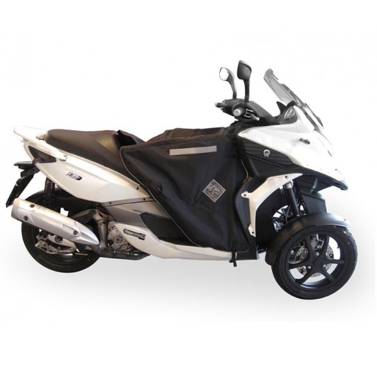 Termoscud es un cubrepiernas o una manta térmica para scooter, una solución práctica y efectiva para coger la moto cuando hace frío. Se puede utilizar también para tapar el asiento de la moto cuando está aparcada y protegerlo así de la humedad y la suciedad. Se puede montar y desmontar muy fácilmente.