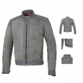 ** Exterior de poliamida con inserciones de piel. ** Forro ligero en tejido perforado. ** Interior extraíble cortaviento e impermeable. ** Protecciones CE D3O - Nivel 1 en codos y hombros. Predisposición para instalar un protector CE D3O en la espalda (no incluido).