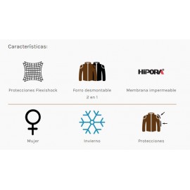 La Cazadora Teneree Lady está fabricada en tejido de algodón encerado repelente al agua, 100% impermeable y transpirable. LLeva un Forro interior desmontable 2 en 1 y contiene 6 bolsillos exteriores y dos interiores.La seguridad y el estilo es lo primero en nuestra marca. Esta cazadora con un marcado estilo clásico de los años 60, es la perfecta acompañante para pasar desapercibido encima de la moto y a su vez ir protegido con las protecciones que incorpora.