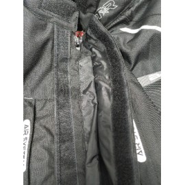 - MaxCordura 600 - Forro interior poliéster - Forro térmico desmontable - Membrana impermeable WATERPROOF 100 % - Ajustes en cintura,cadera ,muñecas, y brazos - Protectores homologados (CE) en hombros, codos y espalda desmontables - Reflex 3M Scotchlite® reflectantes - 4 bolsillos exteriores.( 2 inferiores con cremallera y 2 con cremallerra) + 1 bolsillo interior - Cuello alto ajustable - Cremallera Trasera para agarre con pantalon - Parte trasera ventilaciones 2 cremalleras.