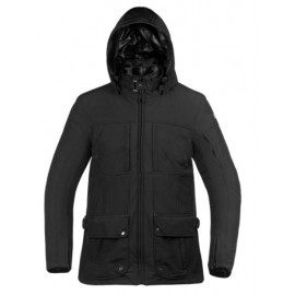 --Cazadora de corte urbano de tejido softshell. --Pelo alrededor de cuello --Ideal para días de más frío. --Material impermeable 100%. --Muy suave y cómoda. --Capucha demontable. --Protecciones en codos / hombros / espalda homologadas CE --Forro interior desmontable. --Bolsillos exteriores 2 con broche + 2 cremallera --Bolsillo interior con cremallera y bolsillo para movil