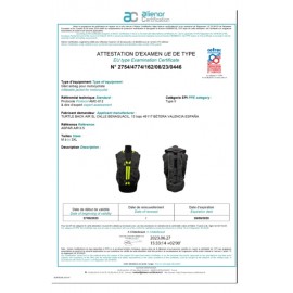 200 milisegundos que podrían salvar tu vida El Chaleco Airbag Aspar Air 0.5, certificado en las instalaciones del CRITT Sport Loisirs (Regional Centre for Innovation and Technology Transfer) de Châtellerault (Francia), ha sido homologado conforme a la norma Norma Europea 1621-4 sobre protecciones inflables para motociclistas y ha superado todos los test requeridos, consiguiendo una velocidad de activación e hinchado completo de 200 milisegundos y superando las pruebas de impacto, tallaje (100% protección torácica y 120% protección de espalda) y resistencia de la cinta a la rotura.