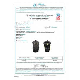 El Chaleco Airbag Aspar Air 1.0, certificado en las instalaciones del CRITT Sport Loisirs (Regional Centre for Innovation and Technology Transfer) de Châtellerault (Francia), ha sido homologado conforme a la norma Norma Europea 1621-4 sobre protecciones inflables para motociclistas y ha superado todos los test requeridos, consiguiendo una velocidad de activación e hinchado completo de 200 milisegundos y superando las pruebas de impacto, tallaje (100% protección torácica y 120% protección de espalda) y resistencia de la cinta a la rotura.