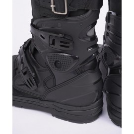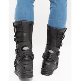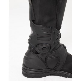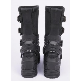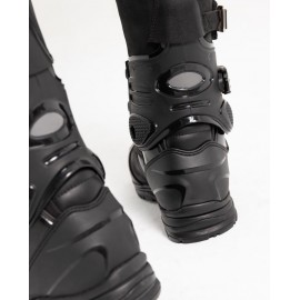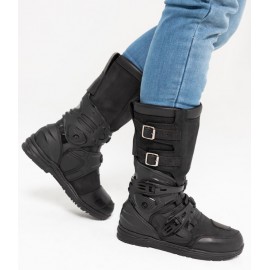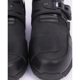 Botas de moto de piel premium con suela antideslizante, cierre seguro de velcro y clic, hebilla para estilo retro. Refuerzo en tobillo, elementos reflectantes y confort interior con malla transpirable y plantilla acolchada.