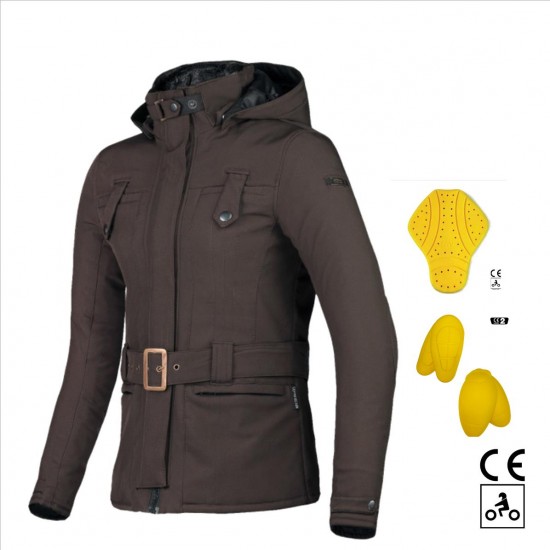 Te sentirás protegida por un suave envoltorio transpirable y cortaviento, además certificado moto CE en la Clase A, con protecciones Comfort Protection System en codos y hombros incluidas, y bolsillo para guardar el protector de espalda.