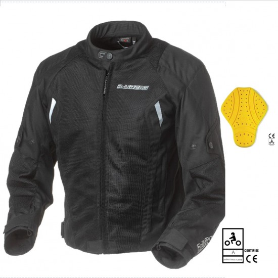 Chaqueta moto verano multirejilla RAINERS ONE PLUS negra homologada con nivel 2 " . Outlete.es