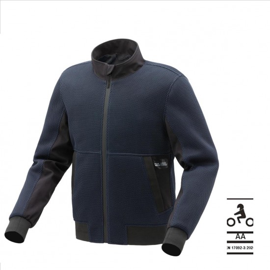 Chaqueta certificada CE – Clase AA según la directiva EN 17092, para ofrecer a los motoristas una protección adecuada contra la abrasión y el impacto, sin limitar la capacidad de conducción.