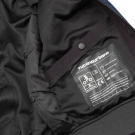Chaqueta de moto verano rejilla Tucano Urbano Flowmotion Azul Softshell homologada EN17902 con certificado doble AA