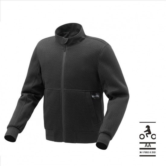 Chaqueta certificada CE – Clase AA según la directiva EN 17092, para ofrecer a los motoristas una protección adecuada contra la abrasión y el impacto, sin limitar la capacidad de conducción.