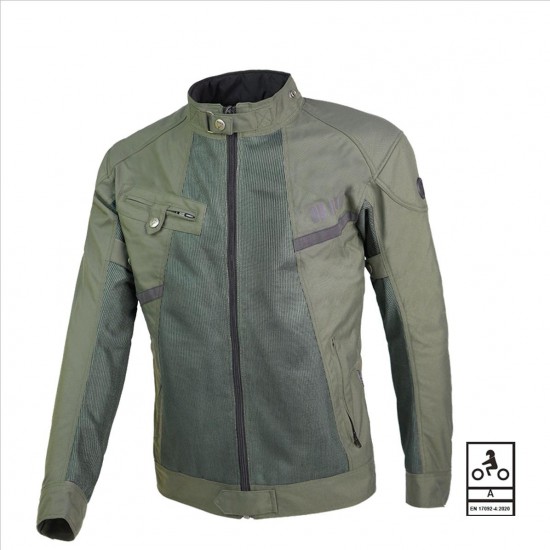 Chaqueta de moto que combina cordura y malla de alta resistencia siendo la combinación perfecta para los ruteros de los meses cálidos ya que cumple con el estándar CE prEN17092-4:2018 con nivel A además de incorporar protecciones extraíbles en codos y hombros "Flexishock" (nivel 1 EN1621-1:2012) y con un bolsillo para protección de espalda.
