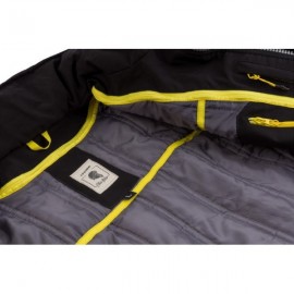 Tejido externo anti-abrasión 85% Polyester, 15% algodón con tratamiento de repelencia al agua y revestimiento interior PU Elementos reflectantes en cuello y puños para una mayor visibilidad Protecciones desmontables en codos y hombros con certificación CE de nivel 1 Espacio interior dedicado a la instalación de una espaldera (Opcional) CONFORT