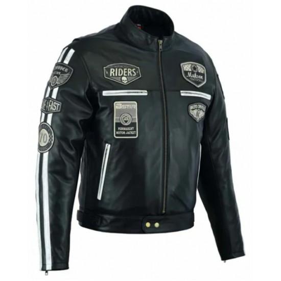 Chaqueta moto Hombre Piel BSTAR Makson Negra con detalles blancos