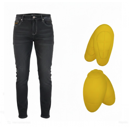 Atractivo y estilizado jean masculino en color azul. Con refuerzos en las zonas de impacto mediante fibras de kevlar en su interior. Jeans desenfadados y modernos, con una linea de diseño casual moteros que deseen ir bien protegidos sin privarse de la comodidad y del estilo mientras conducen! La gran elasticidad de nuestra composición y su corte SLIM FIT/ además de confortables, se caractericen por su estilo moderno y desenfadado, gracias también al lavado "Worn Wash" de su denim. Siguiendo una línea de diseño casual, pero no por ello dejando de aportar la mayor seguridad, posibilitando la inserción de protecciones homologadas CE 1621-1 en rodillas y caderas, además del refuerzo interior en fibras de Kevlar® en nalgas, muslos, y zona de las rodillas para una total resistencia a la abrasión en las zonas de impacto. Sin duda unos jeans para ir seguro en moto, de diseño moderno