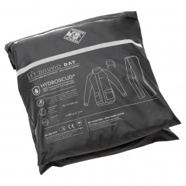 ESPECIFICACIONES TÉCNICAS – Chaqueta y pantalón antilluvia – EPI CE 1ª categoría, según la directiva EN 343:2019 – HYDROSCUD®: – Exterior de poliéster ligero. con tratamiento resistente al agua. membrana interior cortaviento, transpirable e impermeable a una alta columna de agua – Costuras selladas (incluido en el cuello) – RAIN TOWER TESTED – EN 14360:2004 – Se pliega en una funda de doble compartimento Chaqueta – Forro de malla de poliéster – Trampa antiagua en la cremallera central – Impresiones reflectantes en pecho y espalda – Ajuste con velcro en puños y cuello – Cintura elástica – Ajuste en el bajo con cordón – 2 bolsillos exteriores en el bajo – 1 bolsillo interior Pantalón – Cintura elástica – Bandas en la entrepierna y en la parte interior de la pernera para preservar la estanqueidad de las costuras selladas – Impresión reflectante en el bajo – Fuelle maxi con cremallera en los tobillos para vestirse fácilmente y ajustes de velcro en los bajos