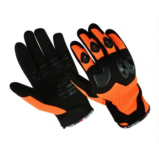 Guantes sport racing con protecciones de silicona en los nudillos para mejorar la protección y la flexibilidad, mientras que las palmas cuentan con refuerzos de fibra de aramida DuPont tm Kevlar® para proteger las zonas más vulnerables de la mano, al mismo tiempo que se mantiene la ergonomía y la comodidad.