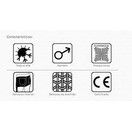--Incluyen protecciones desmontables en rodilla (Ajustable a dos alturas) "Flexishock" certificadas EN1621-1:2012 CE Nivel 2.