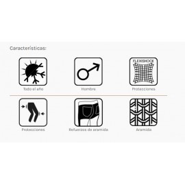 Todos nuestros modelos cuentan con los mejores materiales. Con interiores de Aramida, además de protecciones de rodilla nivel 2, como protecciones de cadera.
