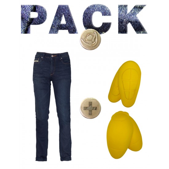 Características: - 5 bolsillos exteriores (1 para monedas) - Fibras de kevlar en nalgas, muslos y rodilleras (bolsillos para protecciones). -"Up&Down knee protector system" Para regular la altura de las protecciones de las rodillas a cualquier nivel para asegurar la altura de la protección sin que afecte la altura de la persona. - 2 niveles de ajuste mediante corchetes interiores para regular el largo de la pierna. - Protecciones de rodillas y caderas con certificación CE 1621-1 (incluidas nivel 2). - Cierre central con botón metálico y cremallera de alta calidad YKK con sistema "Lock" para que nunca se baje sola. - Amplias trabillas para cualquier tamaño de cinturón.