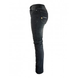 PACK CHIC 02 Negro Atractivo y estilizado pantalón vaquero femenino elástico. Con refuerzos en las zonas de impacto mediante fibras de kevlar en su interior. Jeans desenfadados y modernos, con una linea de diseño casual para moteros que deseen ir protegidos sin privarse de la comodidad y del estilo mientras conducen!
