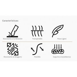 El protector de cadera está fabricado en Elastopan® (100% Poliuretano), muy ligero, flexible, se adapta fácilmente al cuerpo. Su densidad facilita la absorción del impacto.