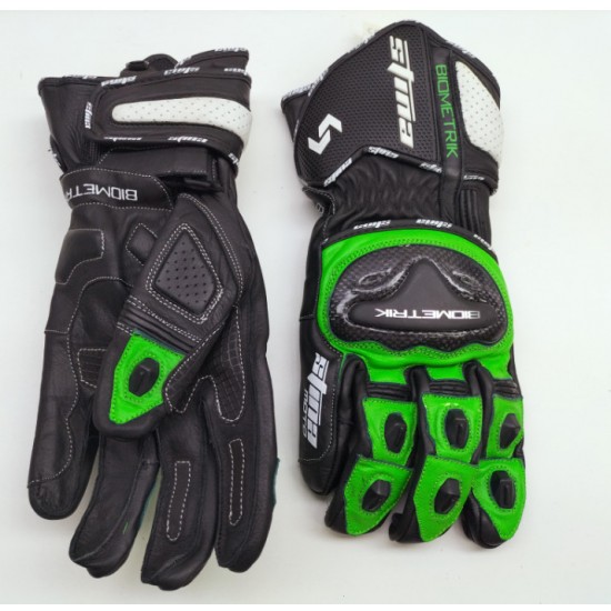 Guantes de piel Racing Stina Biometrik verde -carbono Homologado